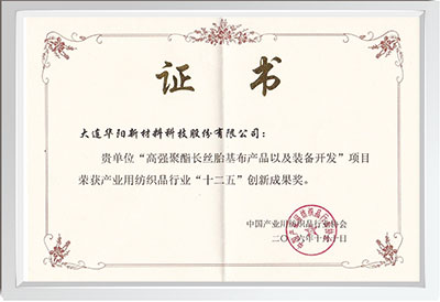 Dalian HuaYang New Materials Technology Co.,Ltd (hereinafter referred to as HuaYang new materials), founded in 2011, the specialty is engaged in the method of polyester and other polymer spinning spunbond nonwoven materials of new technology, new products and complete sets of technology and equipment research and development and industrialization promotion, to provide customized "Turnkey-project" way of the overall engineering solution, To provide customers with technical consulting, product and equipment design, factory design, complete set of technical equipment manufacturing and integration, installation and commissioning and follow-up technical support and other overall, systematic engineering services, as well as the development, production and sales of Bi-component coarse denier filament nonwoven materials.